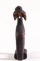 DescriptionHeddle pulley with a two-faced bird head at the top. A hole for suspension appears at the neck of the bird, while the “legs” are pierced for the insertion of a rod and spool.
